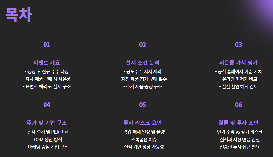 | 이벤트 대상 | 상장 후 신규 주주 (공모주 투자자 제외) |