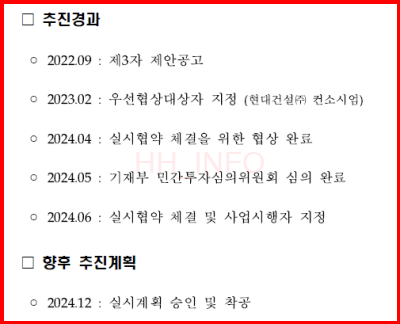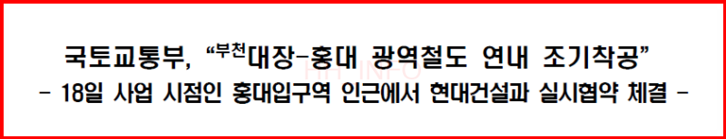 현대건설과 실시협약을 체결하였고, 현대건설컨소시엄(현건+우리은행+산업은행)이 24년 하반기 착공에 들어갈 예정이에요. 원래는 25년 착공 예정이었지만, 이를 앞당기기로 했답니다. 3기 신도시와 맞물려 정부와 지자체(마포구, 부천 등)에서 강하게 밀어붙이고 있어요.