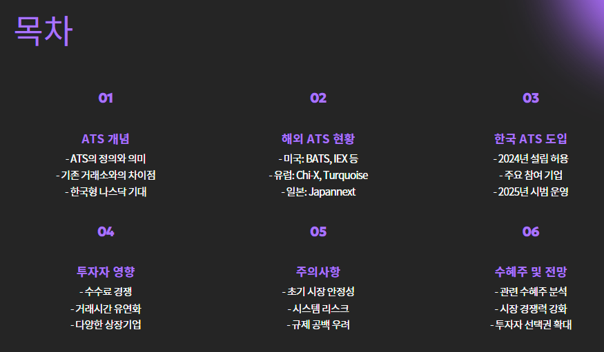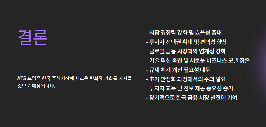 - 일부 ATS는 야간 거래, 주말 거래도 고려 중