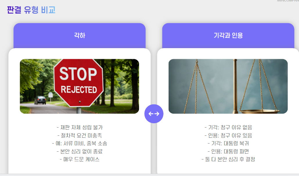 - 최종 판결 – 인용, 기각, 각하 중 하나