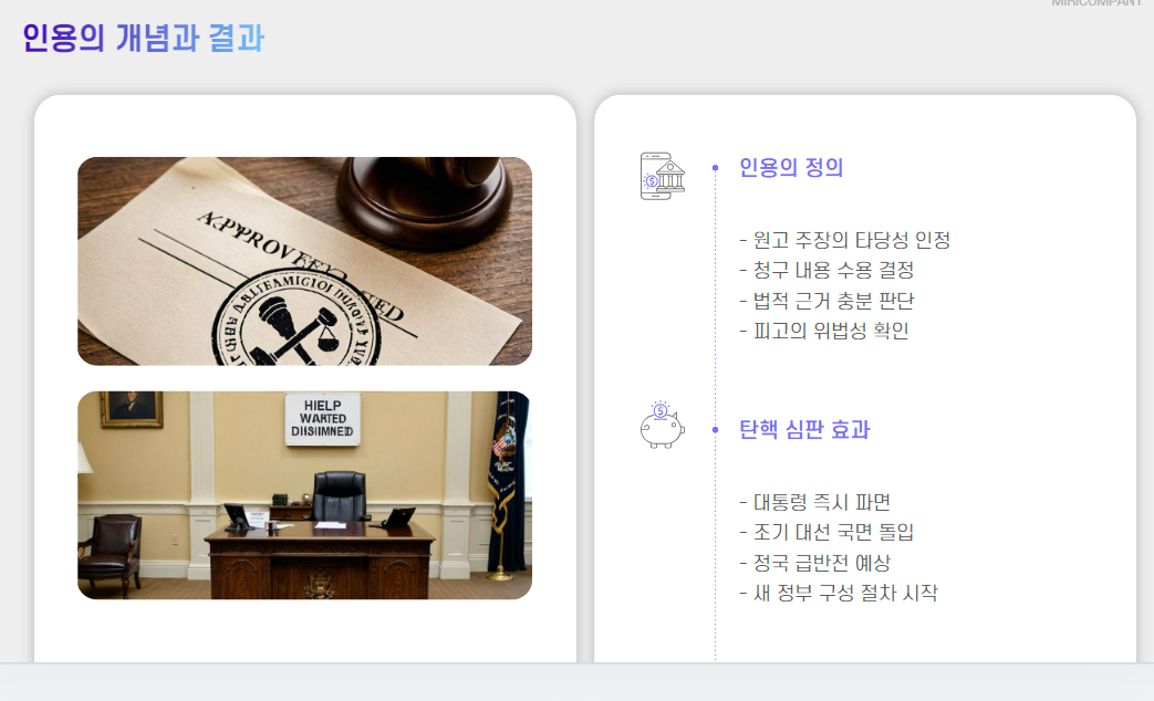 🔹 인용: 소송에서 이김 – 대통령 파면