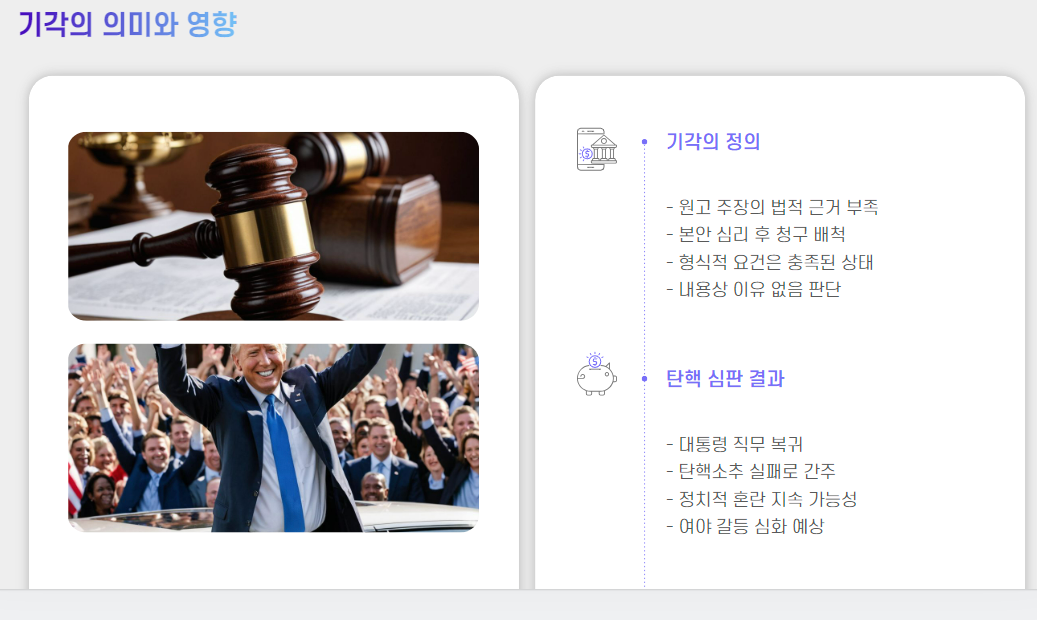 - 기각 시: 정치적 혼란 계속, 여야 갈등 격화