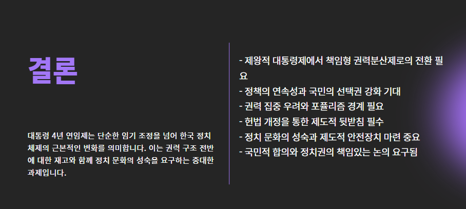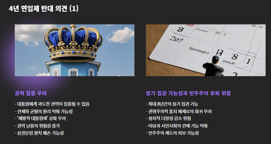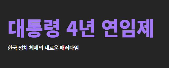 대통령 4년 연임제는 단순한 임기 조정 문제가 아니라, 한국 정치의 체질 개선과 권력 구조 전반의 개편 논의로 연결되는 문제입니다.