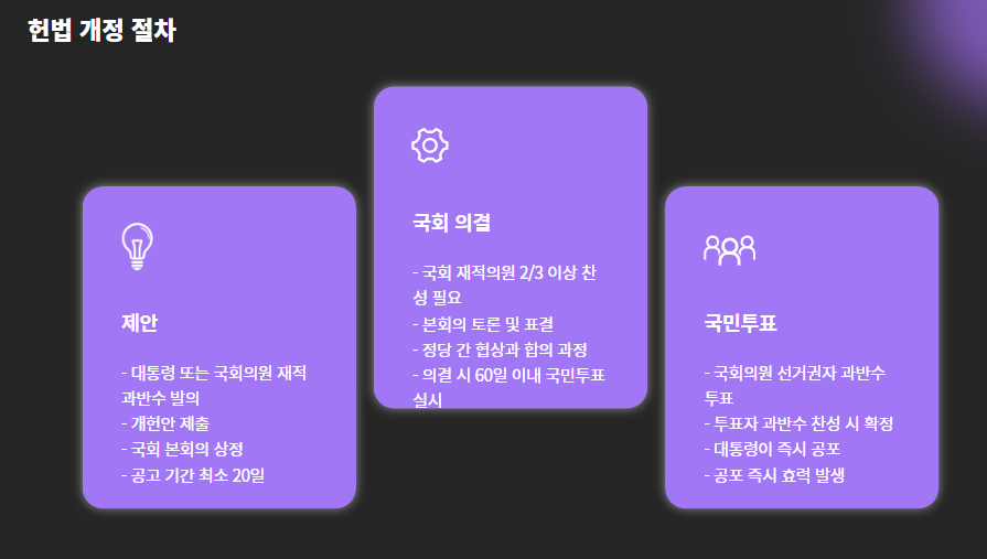 - 국민투표를 거쳐 과반수 찬성 시 개정 확정