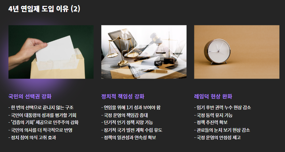 - 한 번의 선택으로만 대통령을 끝내는 구조보다,