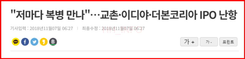 18년도에는 골목상권 침해 이슈로 인해 상장이 무산되었습니다.