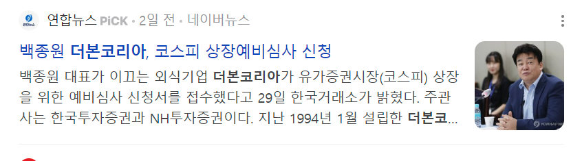 더본코리아는 이미 예비 심사청구서를 제출한 상태입니다. 7월 말에 한국거래소의 승인 여부가 발표될 예정이며, 승인이 나면 8월에 증권신고서를 제출할 것입니다.