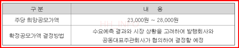 청약 일정은 10월 28일부터 29일까지 진행되며, 한국투자증권과 NH투자증권에서 청약이 가능합니다. 상장 예정일은 11월 6일로, 상장 당일에는 전체 주식의 19.7%가 유통될 예정입니다.