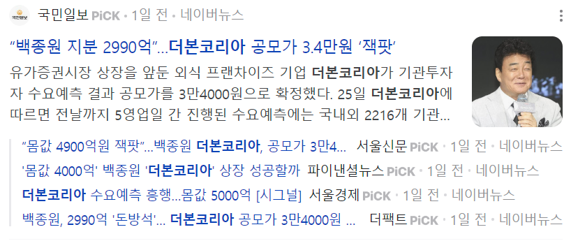 더본코리아의 IPO 소식과 백종원 회장의 승진을 축하하는 내용이 흥미롭네요. 공모가가 예상보다 높게 형성되고, 수요예측에서 좋은 반응을 얻은 점은 더본코리아의 미래에 대한 시장의 기대를 반영하는 것 같습니다. 특히 백종원 회장의 대중적인 인지도와 더불어 최근 성공적인 마케팅 사례들이 큰 도움이 된 것 같아요.