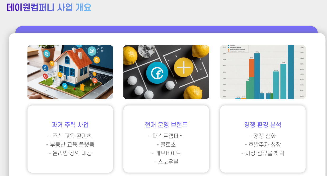 익숙한 이름이지만, 모두가 콘텐츠 교육 분야의 경쟁이 치열한 시장에서 살아남아야 하는 상황입니다. 특히 타이탄클래스나 코주부 같은 후발주자들이 무섭게 성장하고 있어, 데이원컴퍼니의 입지는 점점 좁아지는 형국이죠.
