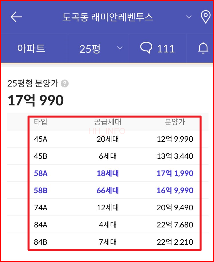 - 58B: 16억 9990만원 (66세대)