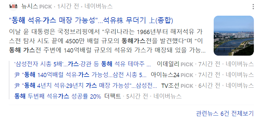 포항 앞바다 석유가스 매장 가능성이 발표되자 천연가스, 석유, 셰일 관련주가 급등했어요.
