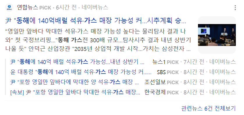2024년 6월, 한국석유공사는 포항 영일만 인근 심해에서 최대 140억 배럴에 달하는 석유와 가스가 매장되어 있을 가능성이 높다는 결과를 발표했어요. 이는 동해 가스전의 300배가 넘는 규모로, 우리나라 전체가 천연가스는 최대 29년, 석유는 최대 4년 넘게 사용할 수 있는 양으로 판단된다고 해요.