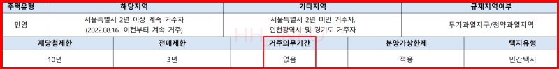 해당 지역에 해당하는 청약자는 서울에서 2년 이상 계속 거주한 자여야 하며, 기타 지역 청약자는 서울 2년 미만 거주자와 인천, 경기도 거주자입니다.