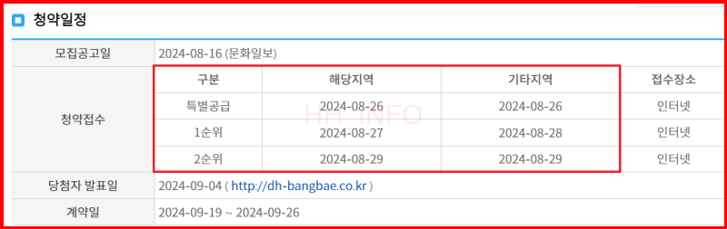 - 1순위 청약: 8월 27일(해당 지역), 8월 28일(기타 지역)