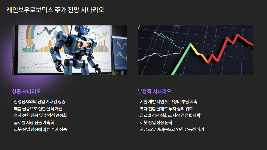 | 성공 시나리오 | 삼성 협업 기대감 + 매출 증가로 주가 반등 가능성 |