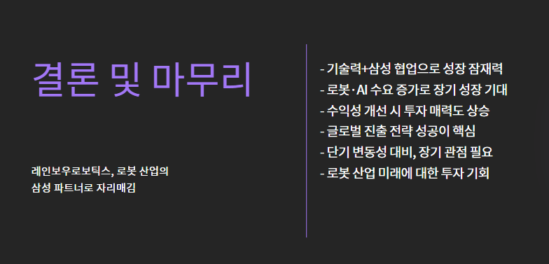 “레인보우로보틱스는 로봇 산업의 ‘삼성 파트너’로서의 입지를 굳히고 있습니다.”