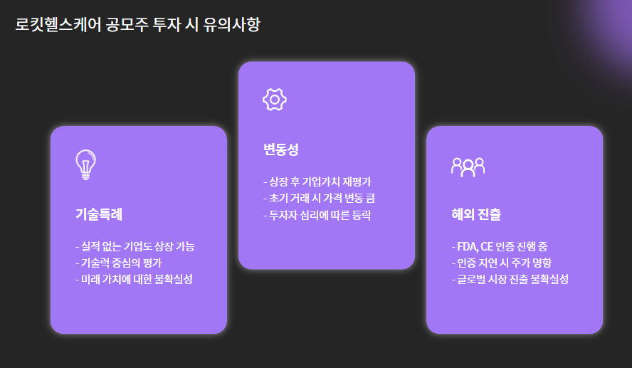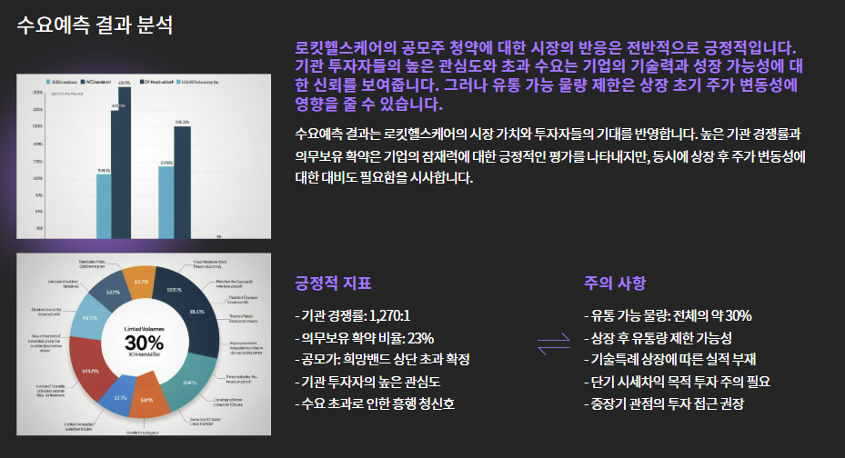 → 상장 후 기업가치 재평가 흐름에 따라 변동성 클 수 있음 - 상장일 당일 대량 매도 가능성 존재 (기관 환매 가능일 체크)