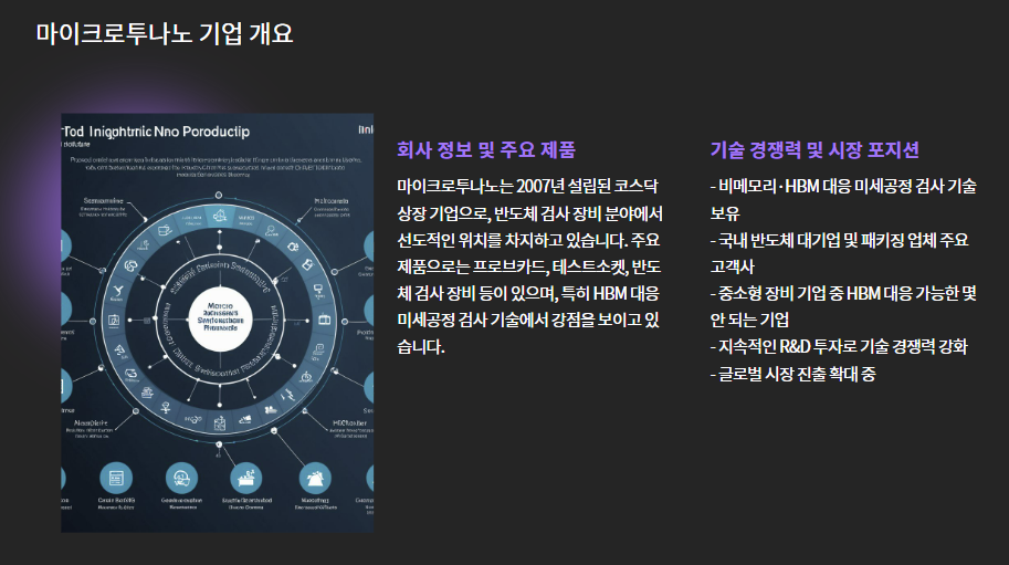 | 기술 경쟁력 | 비메모리·HBM 대응 미세공정 검사 기술 |