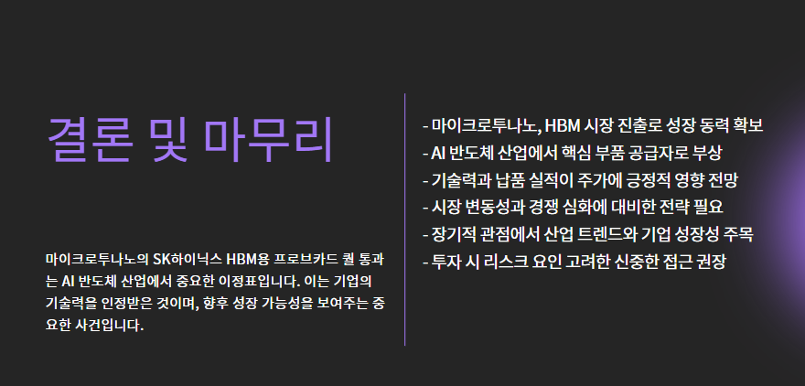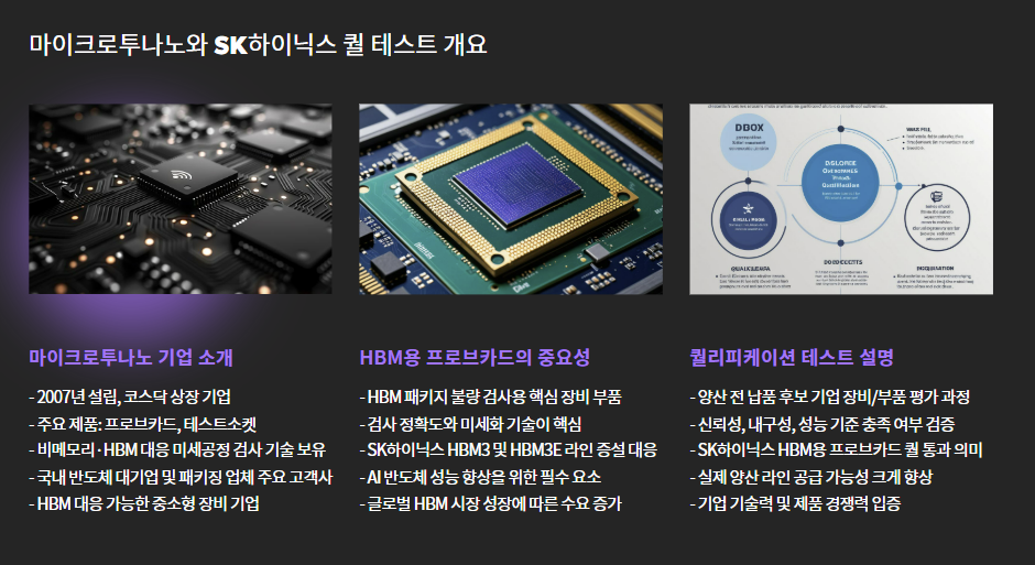 바로 마이크로투나노가 **SK하이닉스의 HBM용 프로브카드 퀄리피케이션 테스트(qual test)**를 통과했다는 소식입니다.