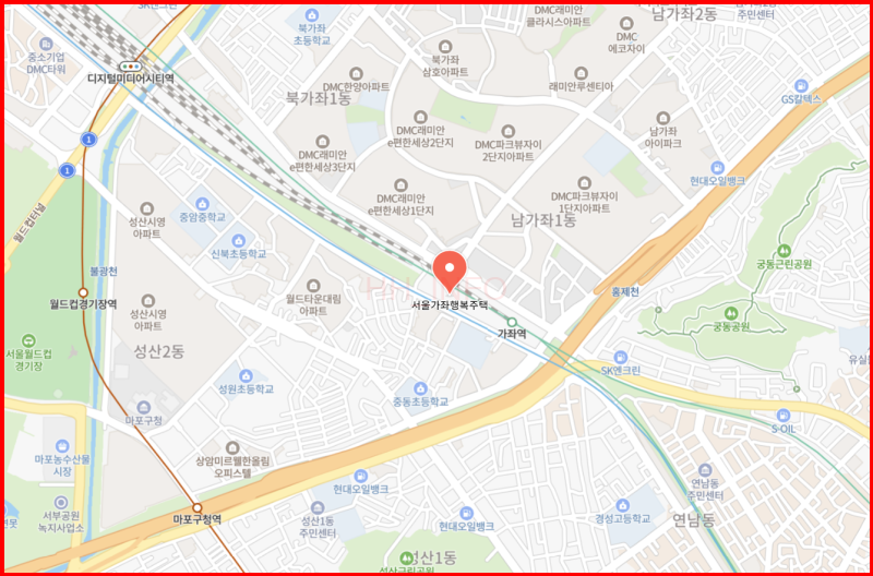 마포구 성산동 경의중앙선 가좌역에 위치해 있으며, 홍대입구역과 DMC역까지 한 정거장 거리입니다.