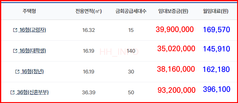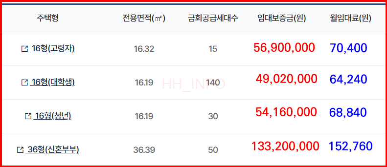 보증금과 임대료 간의 조정이 가능하여, 보증금을 높이면 월 임대료를 낮출 수 있습니다. 최저 월 6만원에 거주할 수 있는 기회이므로, 보증금 조정이 중요합니다.