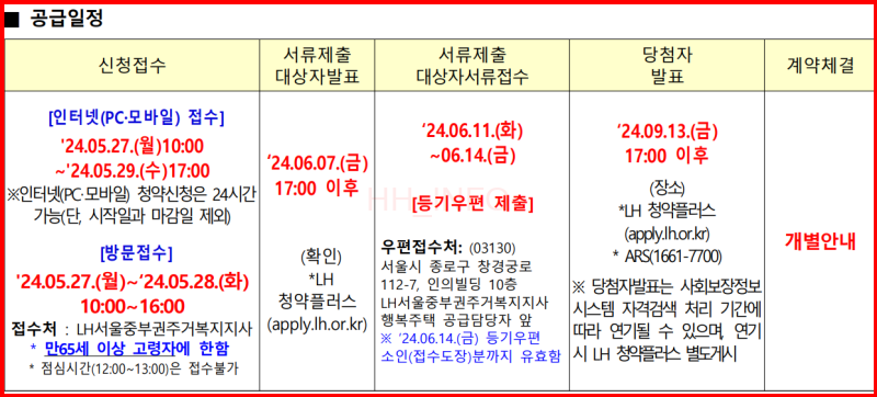 신청은 LH청약플러스 웹사이트 또는 앱을 통해 가능합니다. 오프라인 접수도 가능하며, LH서울중부권주거복지지사에서 신청할 수 있습니다. 신청 이후에는 서류 제출 대상자 발표를 기다려야 하며, 서류 제출 기한 내에 모든 서류를 제출해야 합니다.