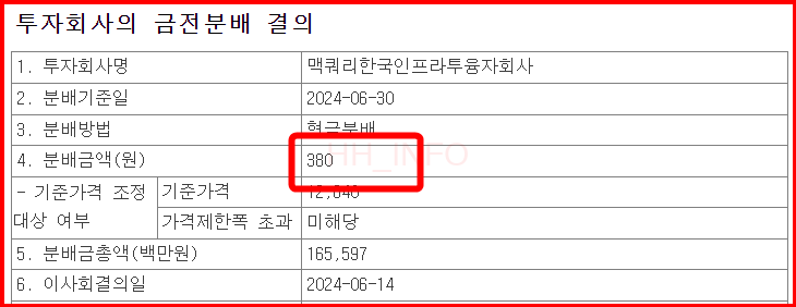 맥쿼리인프라는 고배당주로 잘 알려져 있으며, 최근 몇 년간 꾸준한 배당을 이어왔습니다. 그러나 몇 차례 배당금 삭감 이슈도 있었습니다. 2024년에는 기존 390원에서 380원으로 배당금이 10원 삭감되었습니다.