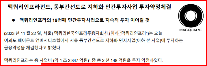 맥쿼리인프라는 이번 유상증자로 모집한 자금 5,000억 원을 통해 동부간선도로 지하화 사업과 하남데이터센터 매입에 투자할 계획입니다. 또한 미래 투자 자금으로 일부 금액을 남겨두게 됩니다.