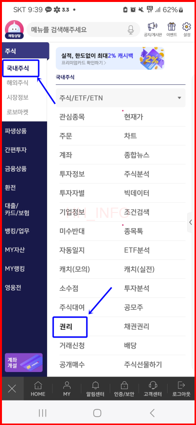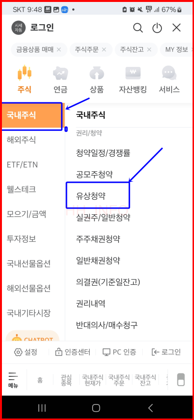 - 키움증권: “국내주식” > “권리” 메뉴에서 유상청약과 유상청약 예약 가능