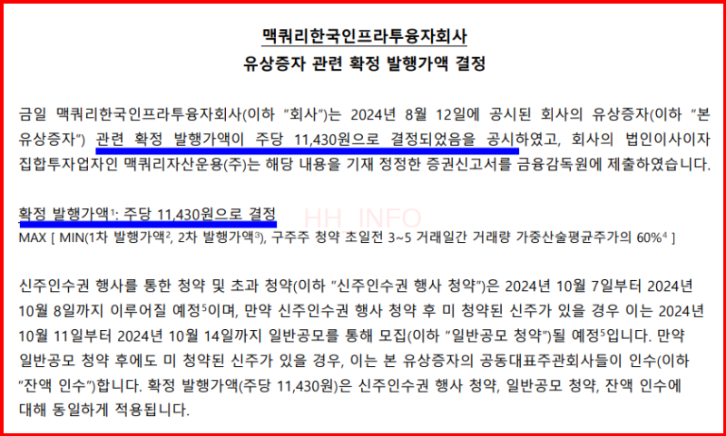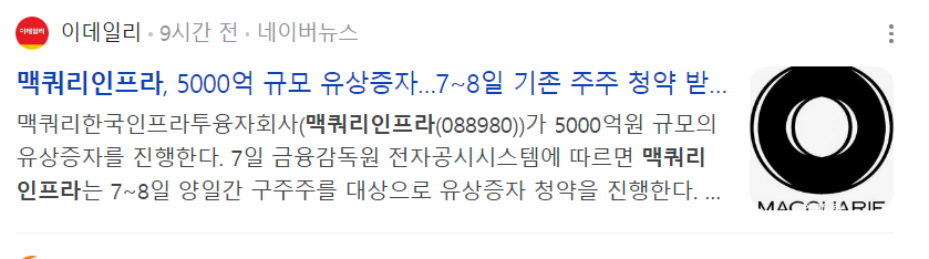 이번 유상증자를 통해 맥쿼리인프라 주주분들께 좋은 기회가 되길 바랍니다.
