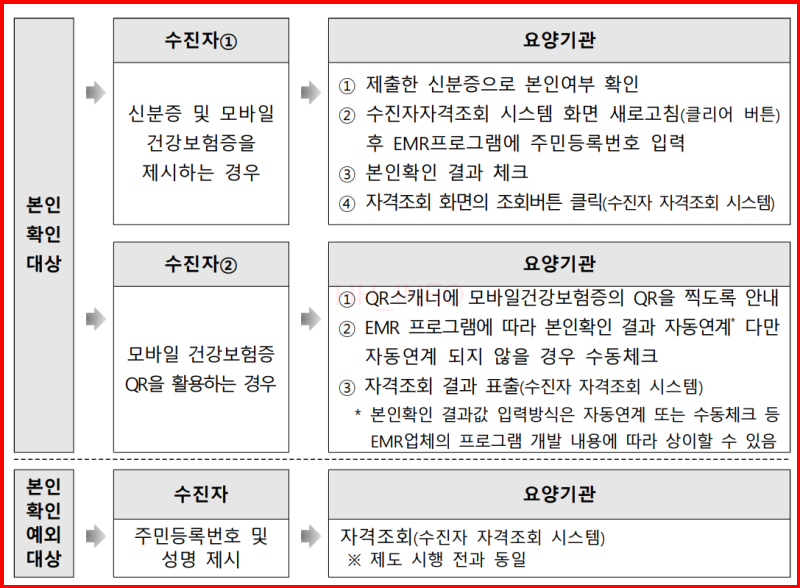본인확인 의무화로 인해 건강보험 적용 시 신분증 제시가 필수적으로 요구됩니다. 그동안 신분증 없이도 건강보험을 적용받을 수 있던 시스템은 타인의 명의 도용 문제를 야기했고, 이는 건강보험의 건전성을 해치는 결과를 초래했습니다. 이에 따라 병원이나 약국 방문 시 본인 확인이 필수화되었습니다.