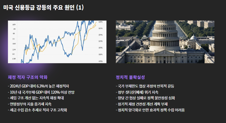 이번 결정은 앞서 **피치(Fitch)**가 2023년 미국 등급을 강등한 데 이은 또 하나의 경고 신호로 해석되고 있습니다.