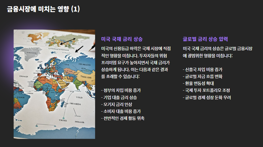 등급이 낮아질수록 채무 상환 능력에 대한 의심이 커지며, 국채 이자율 상승, 시장 불안정성 증가 등이 발생할 수 있습니다.
