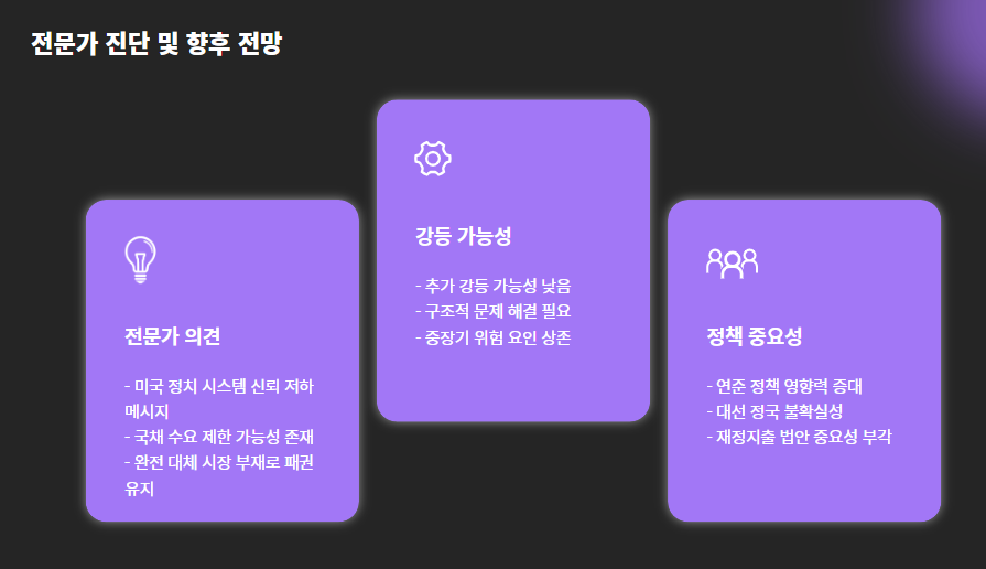 - 환율 변동성 확대 → 원화 약세 압력 강화