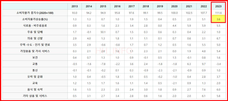- 소비자 물가지수(CPI): 전년도 대비 약 3.6% 상승