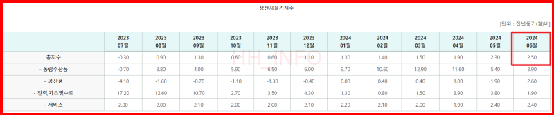 - 생산자물가지수: 최근 24년 6월 기준으로 2.5% 상승
