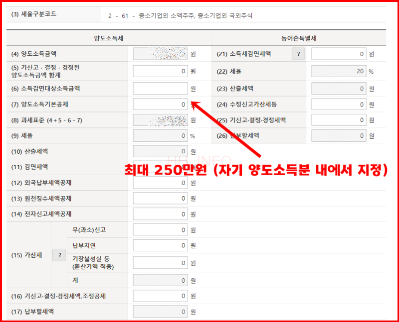 양도소득 기본공제는 250만원입니다. 양도소득이 250만원 이하라면 이 공제를 적용하여 양도소득세를 줄일 수 있습니다.