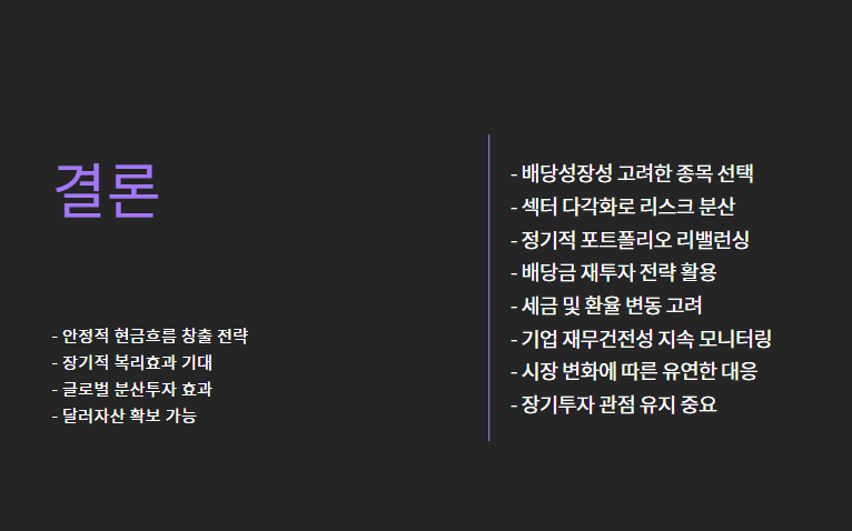 | 장기 복리 효과 | 배당금을 재투자하면 복리 성장 가능 |