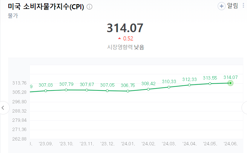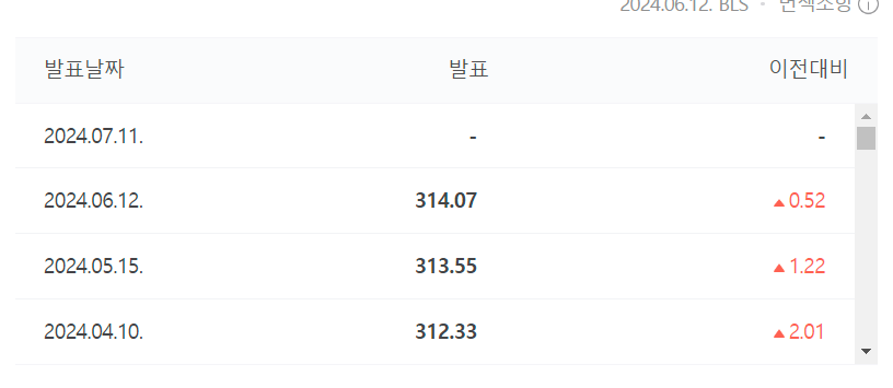 이런 미국의 경제 지표에 반응해서 미국 증시인 나스닥과 S&P500은 사상 최고치를 계속 갈아치우고 있어요. 7월 11일에 CPI 발표가 있는데, CPI가 미국 증시에 힘을 더 실어줄지 기대가 됩니다.