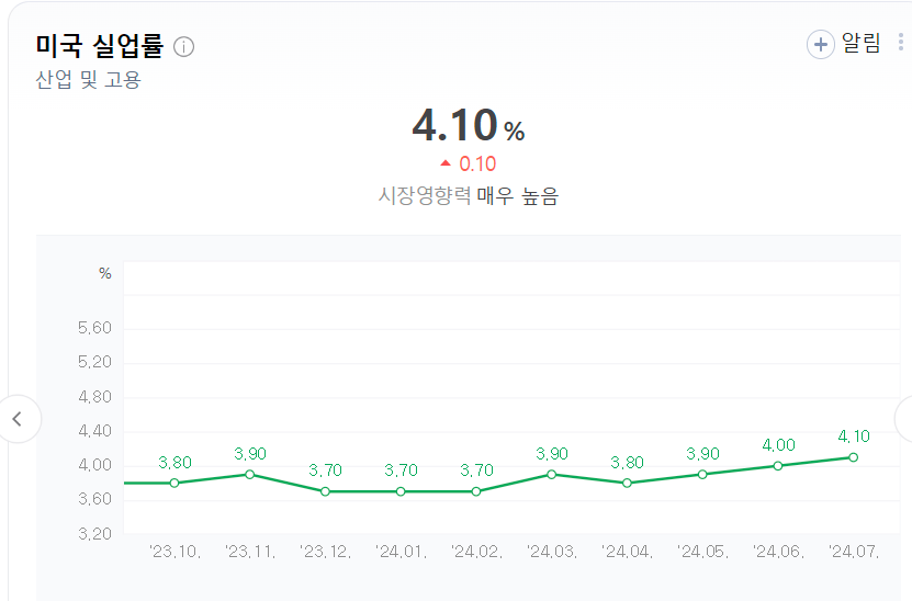 미국 노동부 발표에 따르면 지난달 실업률은 4.1%로, 2021년 11월 이후 최고치를 기록했어요. 이는 전문가 예상치를 웃도는 수치예요.