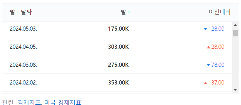미국 실업률과 비농업고용지수 발표와 금리 인하 시기