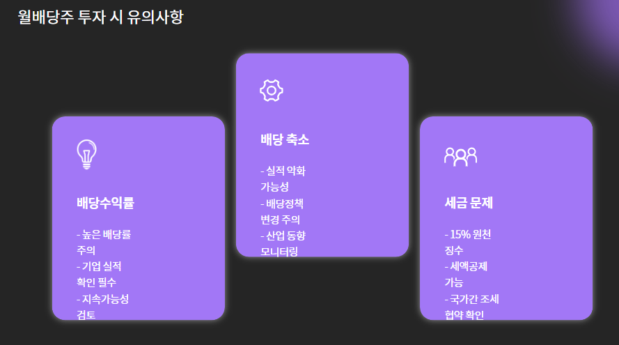 - 월배당주는 매달 1회씩 배당금을 지급하는 주식