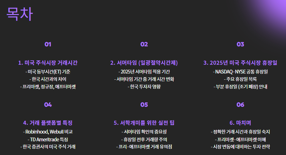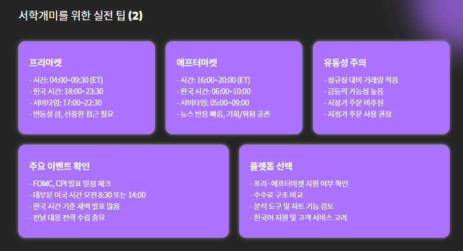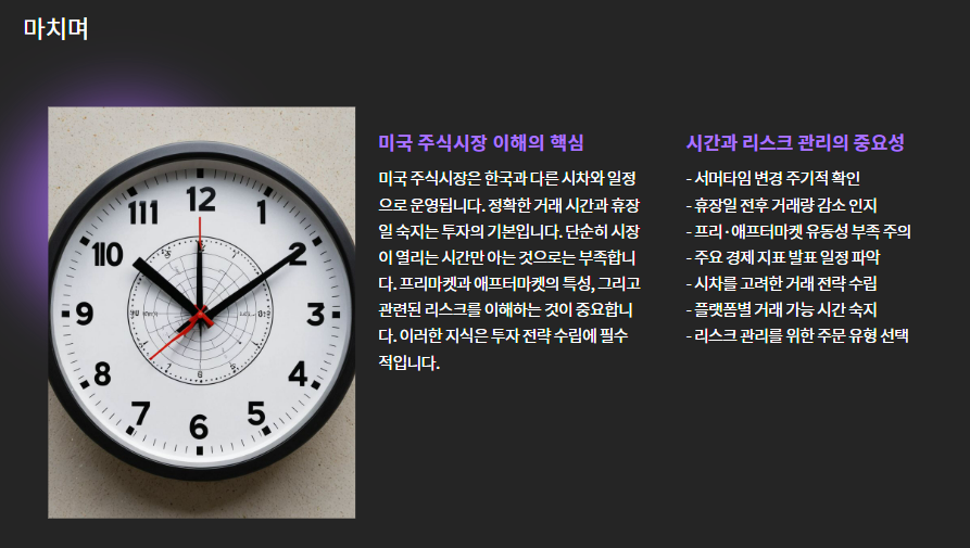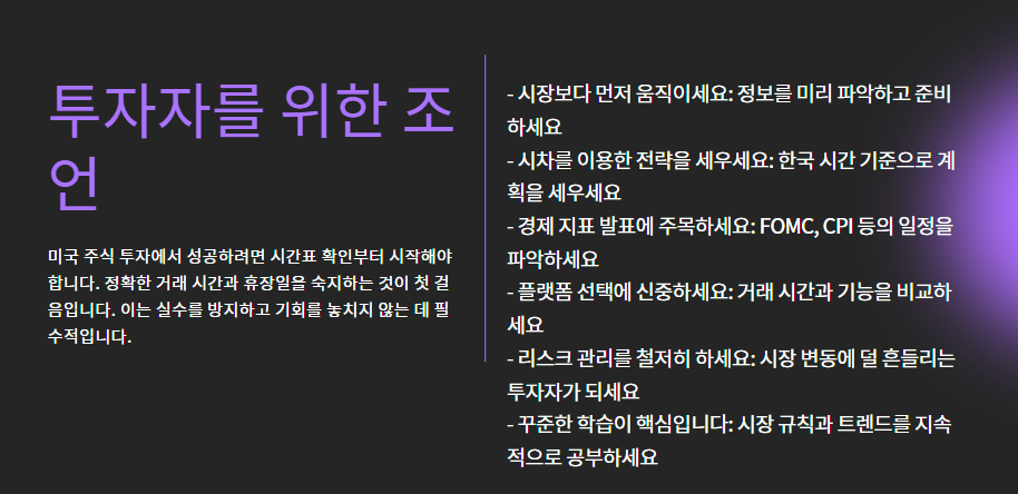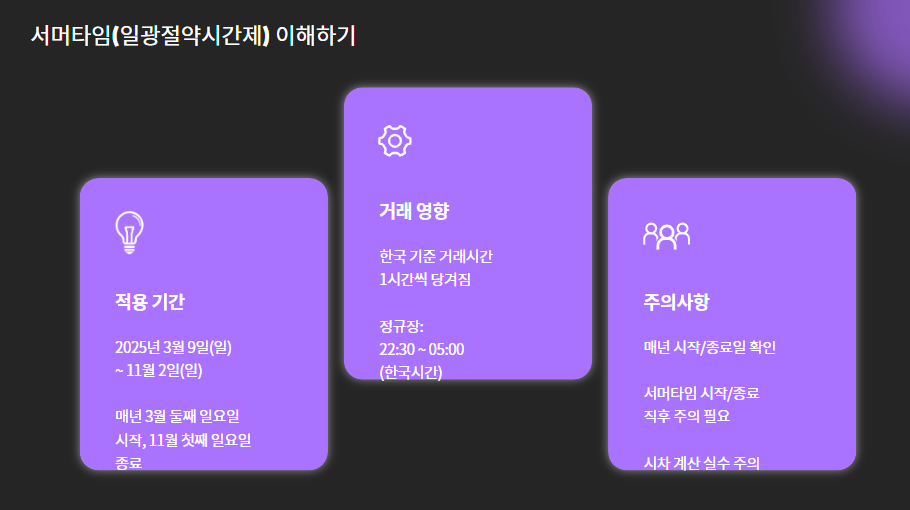 미국 주식시장은 한국과 다른 시차와 일정으로 움직이기 때문에,