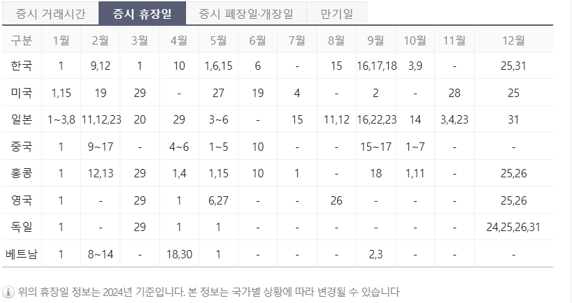 미국 증권 거래소는 매년 총 10일의 휴장일을 갖습니다. 올해 남은 휴장일은 다음과 같습니다:
