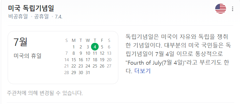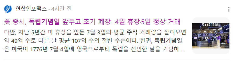 - 7월 4일: 휴장 (미국 주식 거래 불가)