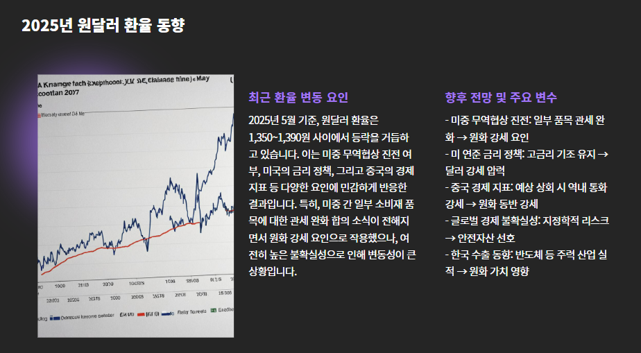 - 관세 완화 소식 → 투자심리 회복 → 원화 강세 요인