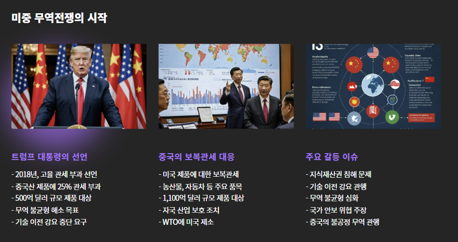 - 이후 중국도 보복관세로 맞서면서 본격적인 무역전쟁 발발