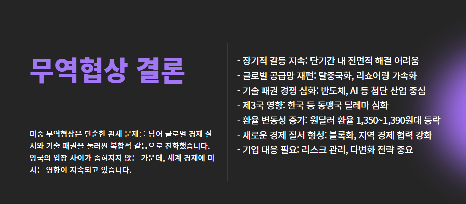 이번 글에서는 미중 무역협상 경과, 관세 합의 현황, 주요 갈등 품목, 그리고 원달러 환율 영향까지 깔끔하게 정리해드립니다. 경제 이슈 따라잡고 싶은 분들, 여기서 확실하게 이해하고 가세요!