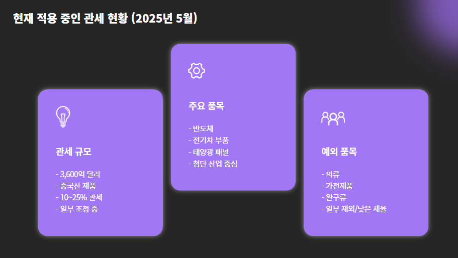 🛃 3. 현재 적용 중인 관세 현황 (2025년 5월 기준)